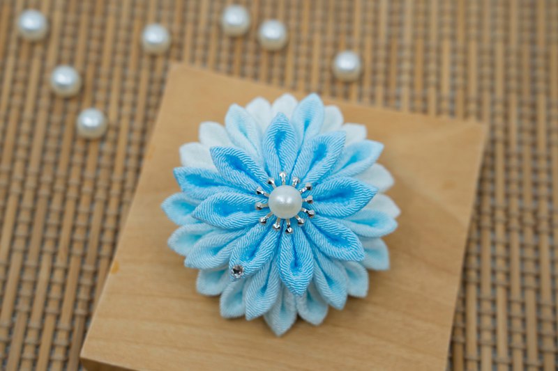 虹緒にじお つまみ細工 和風布花劍菊兩用夾 藍 Pinkoi 設計購物網站 Line購物